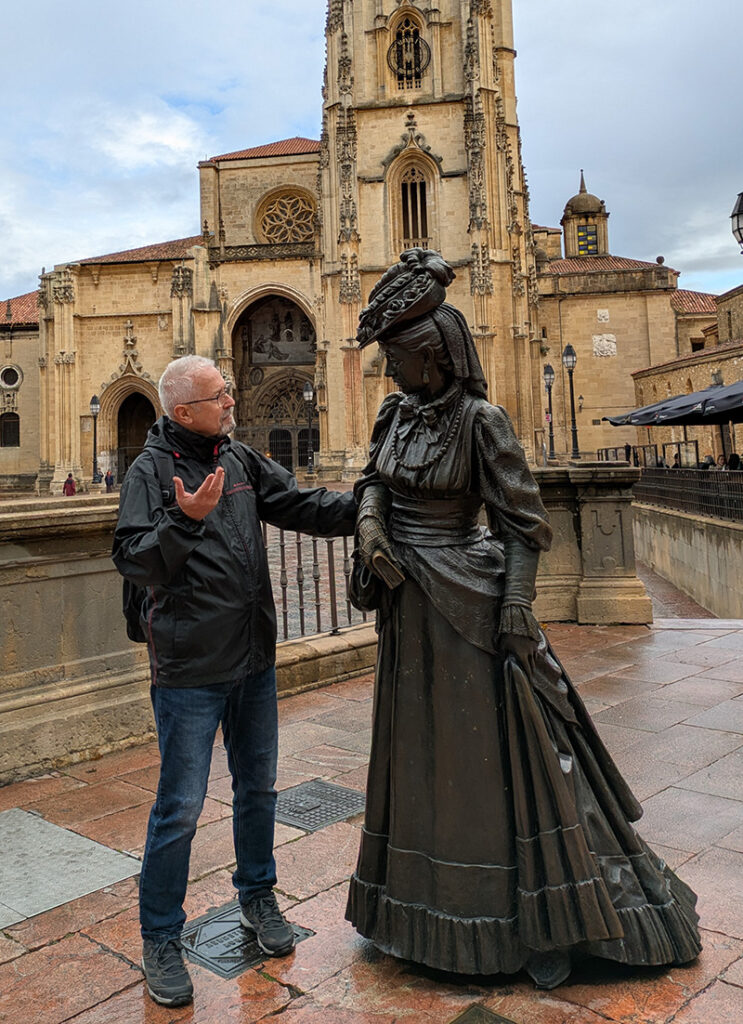 Mi encuentro con Ana Ozores frente a la catedral de Oviedo. Desde el mirador del campanario de la torre, un lugar elevado y discreto desde el que vigila a la ciudad… y a ella, nos observa sin ser visto don Fermín de Pas, el atormentado Magistral y director espiritual de la Regenta.